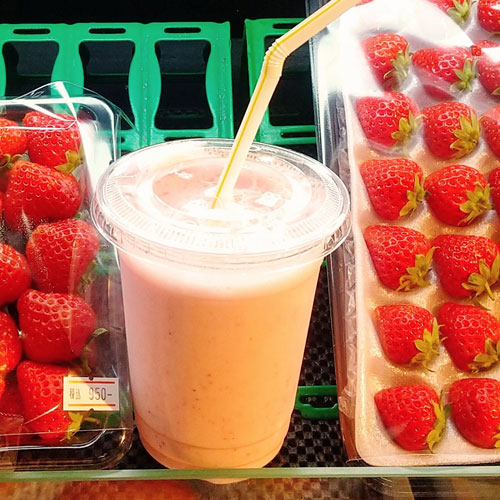 10種類以上ものメニューがありますが、その中でも私のお気に入りは「いちごジュース」です!!